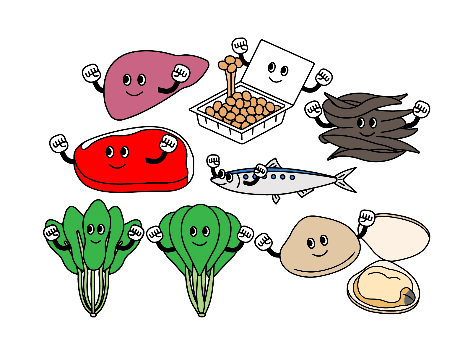 ほうれん草、レバー、大豆製品などに多く含まれます。